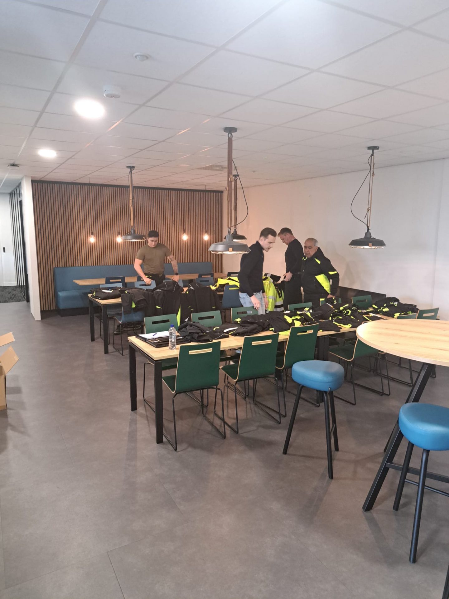 Vorige week vrijdag moesten de mannen de nieuwe bedrijfskleding passen, dit zal ergens volgende week wel geleverd worden.