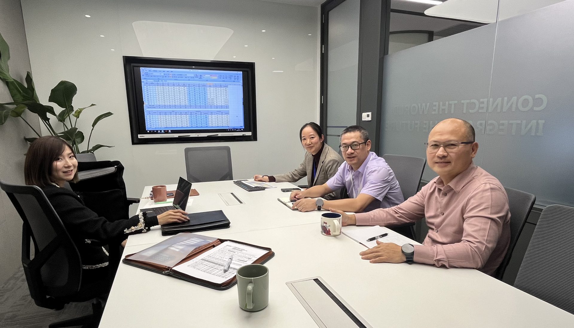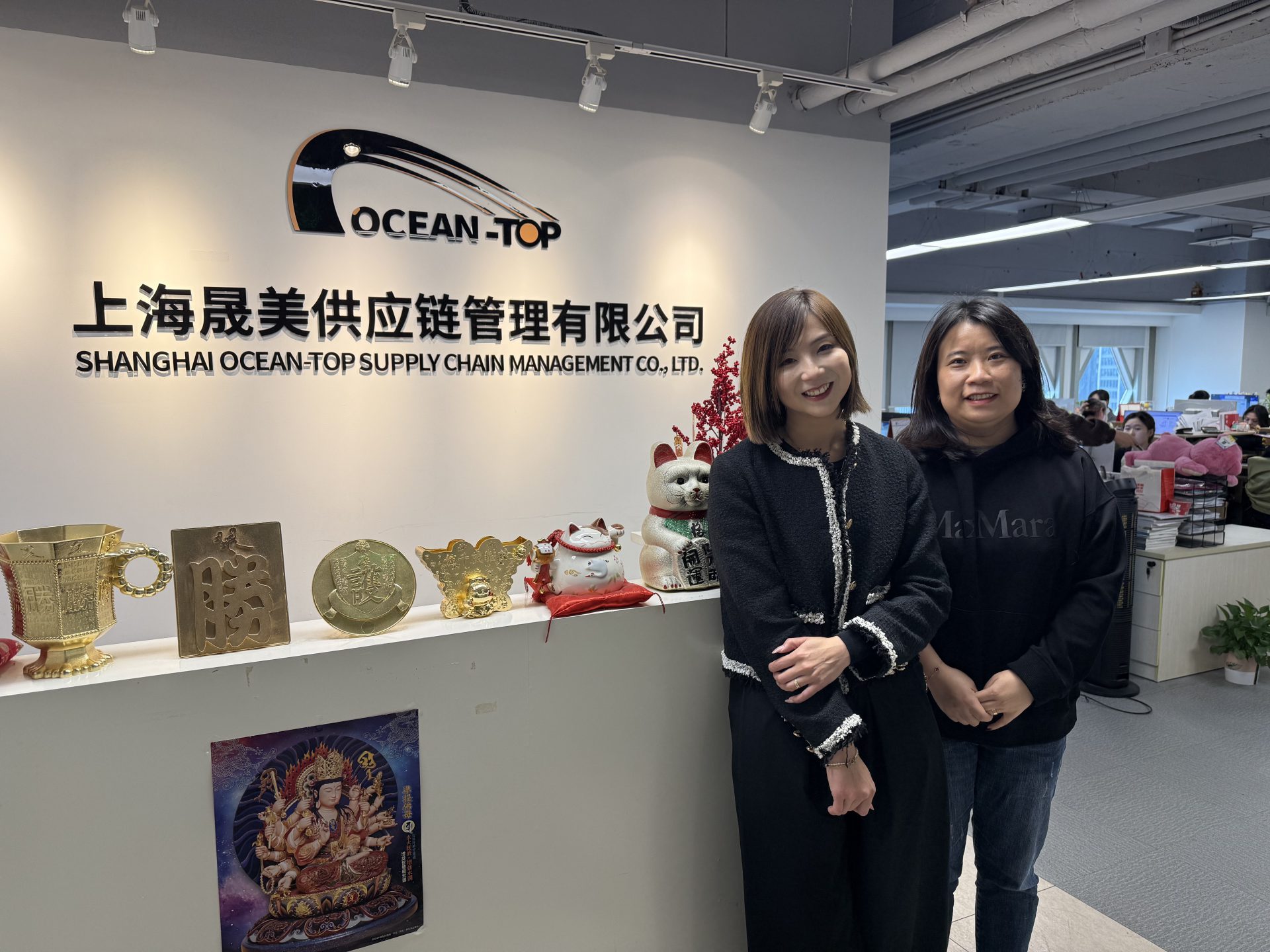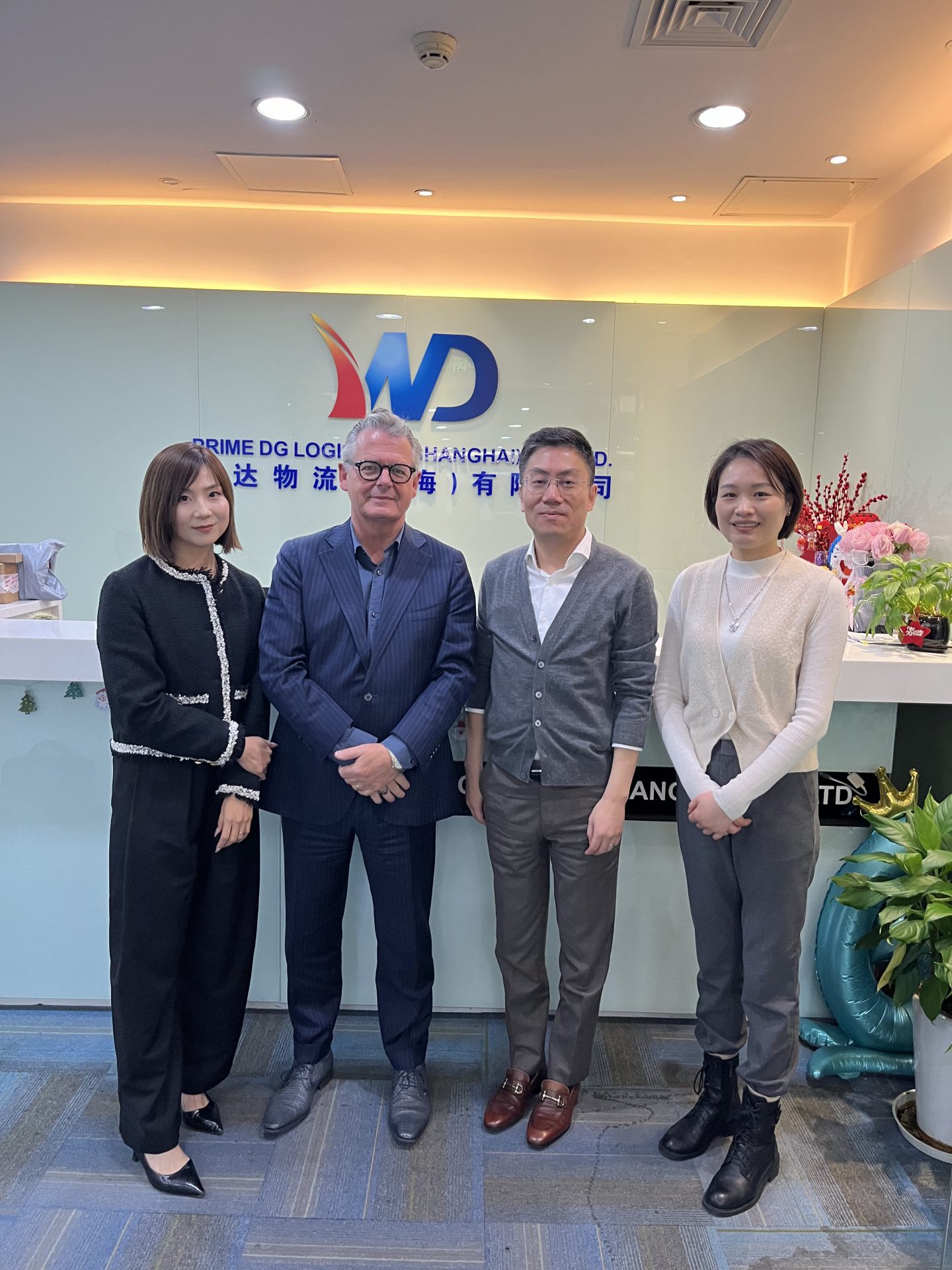 Foto 2: Air Sea Transport met Steven Yin (exec Account manager), Jessica Xu (director overseas) en Sonia Zhang (Log manager)