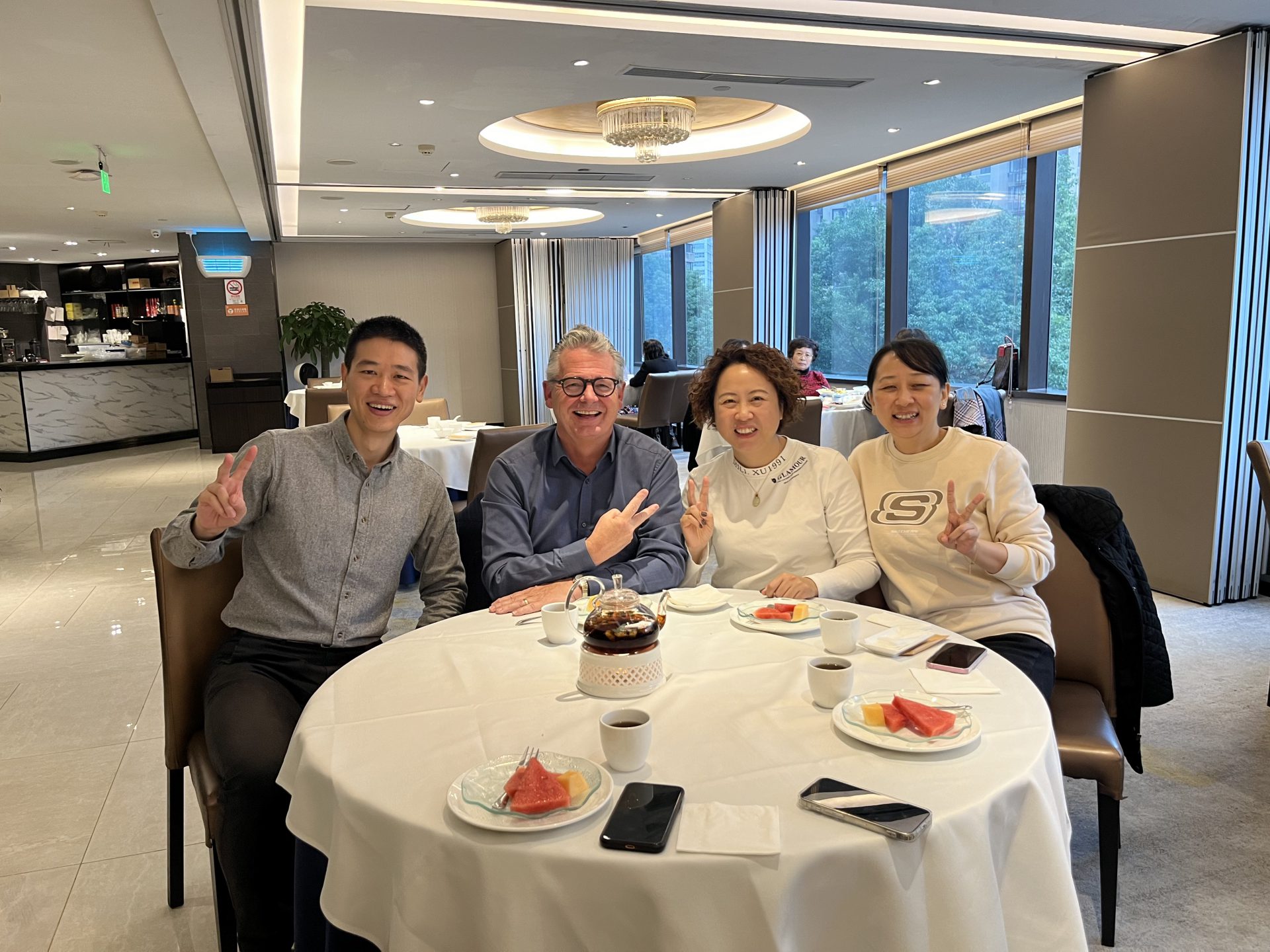 Foto 3: Kaiyuan Shanghai met CEO Protein Lau, Shawn Fang (GM Shanghai) en Yvonne Jin (Ass GM).